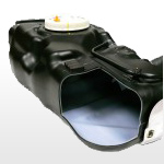 The 4 different materials include a high function resin (Eval) as well as the main material (high density polyethylene). Therefore, permeation of a volatile component of gasoline (HC: hydrocarbon) is suppressed remarkably. Furthermore, the mounting method of tank constituent parts is improved. So, Yachiyo’s plastic fuel tanks comply with the strictest exhaust emission regulations in the world, PZEV.